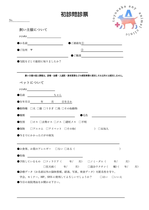 「初診問診票」への記入をお願いします。